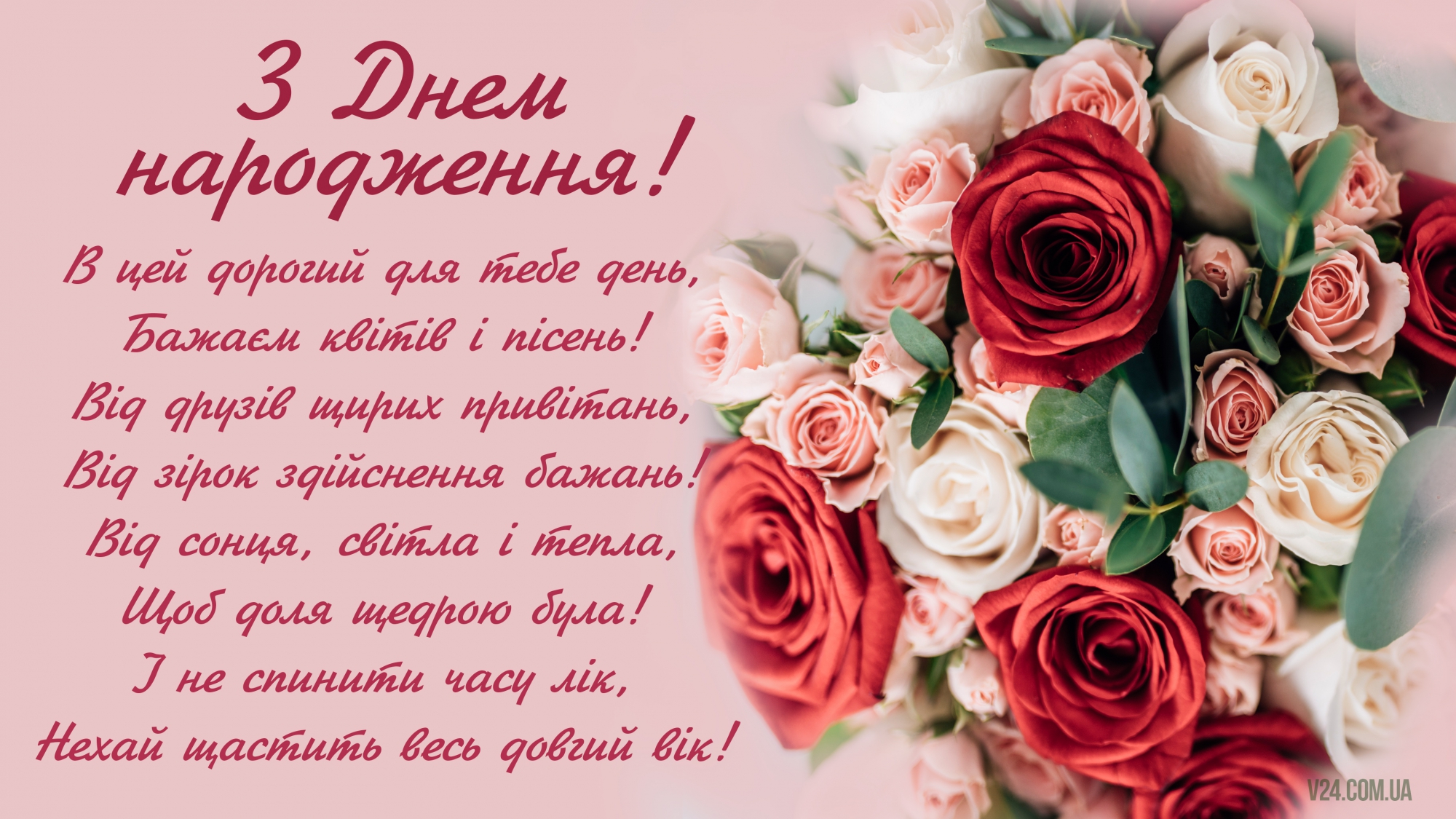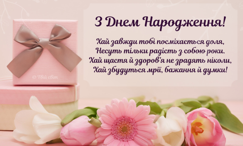 Вітаємо з днем народження, бажаємо щастя й добра! Хай доля дарує радість, а в серці живе весна! Нехай здоров’я буде міцним, успіх супроводжує в справах. Хай усмішка не зникає, а мрії збуваються в мріях!